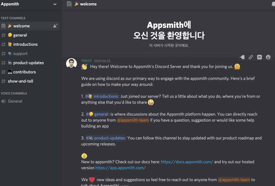 appsmith 디스코드에 맨날 들어가서 support 채널에서 온갖 질문들을 던졌다.