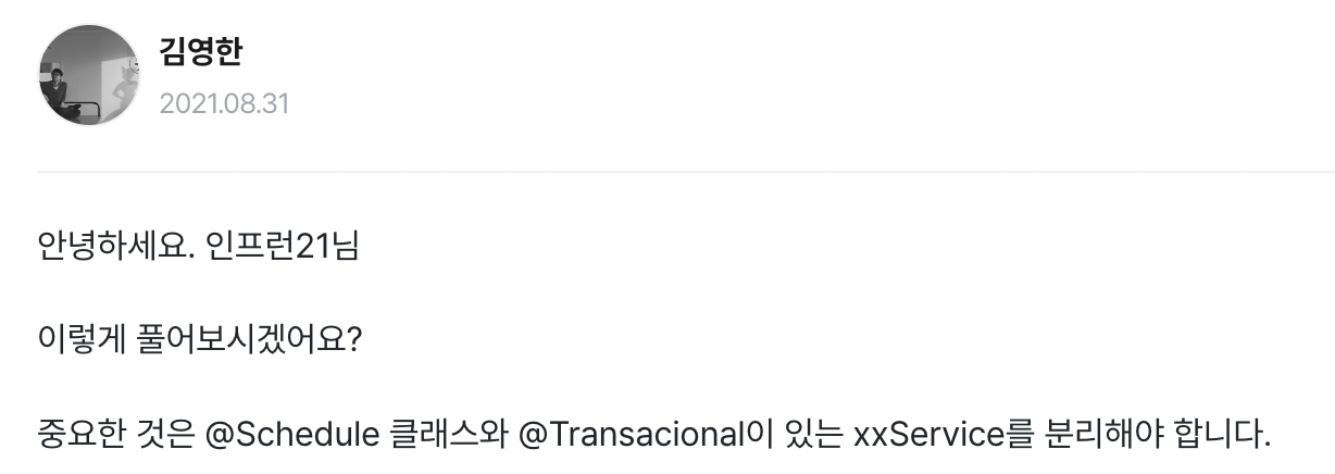왜 @Scheduled 와 @Transactional 어노테이션을 분리해야 하는가